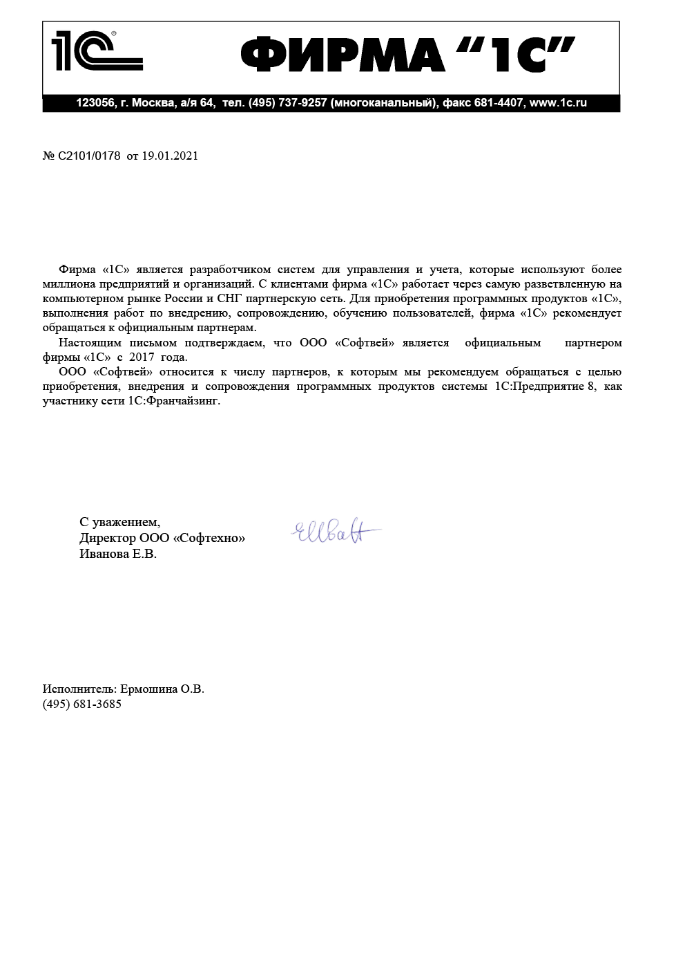 «1С» — российская компания, основанная в 1991 году и занимающаяся разработкой, изданием и поддержкой компьютерных программ, баз данных делового и домашнего назначения.
